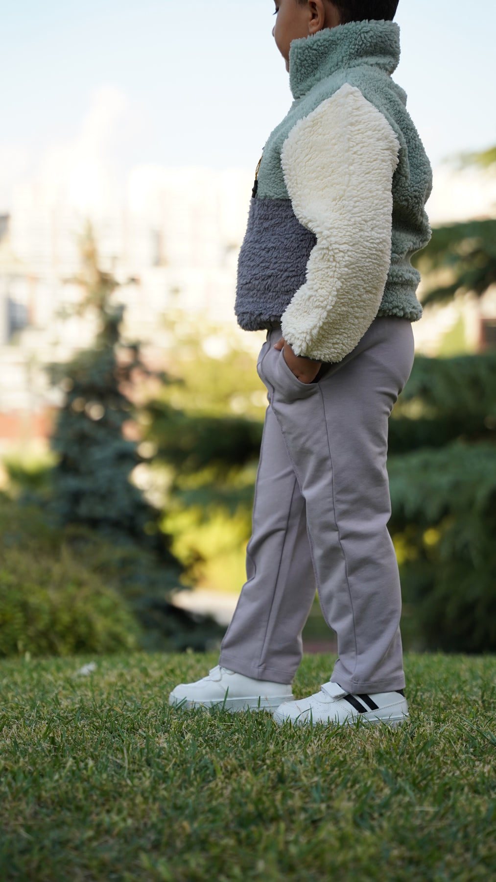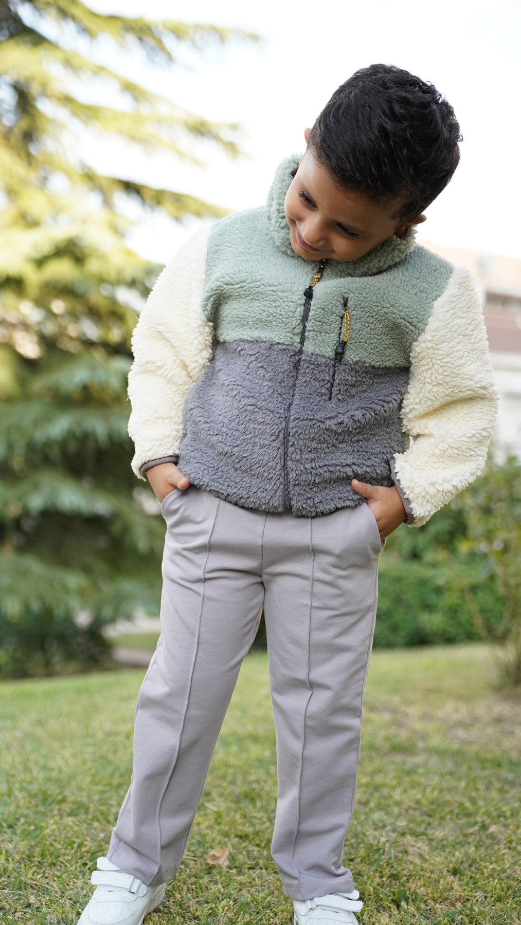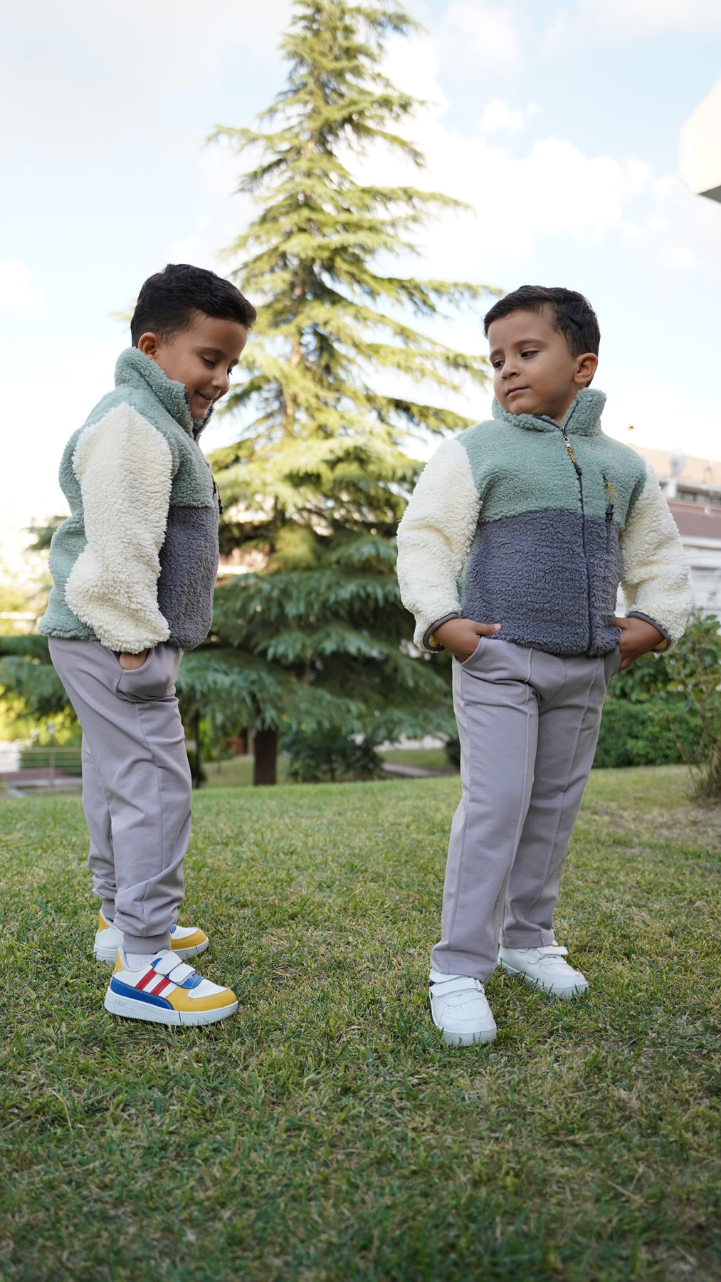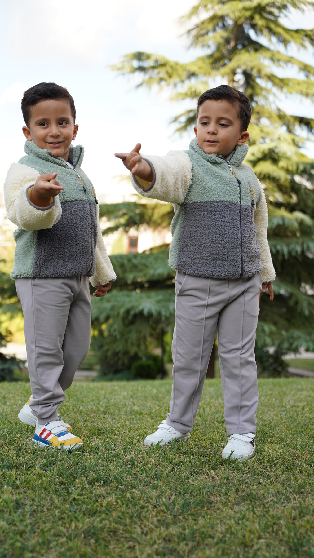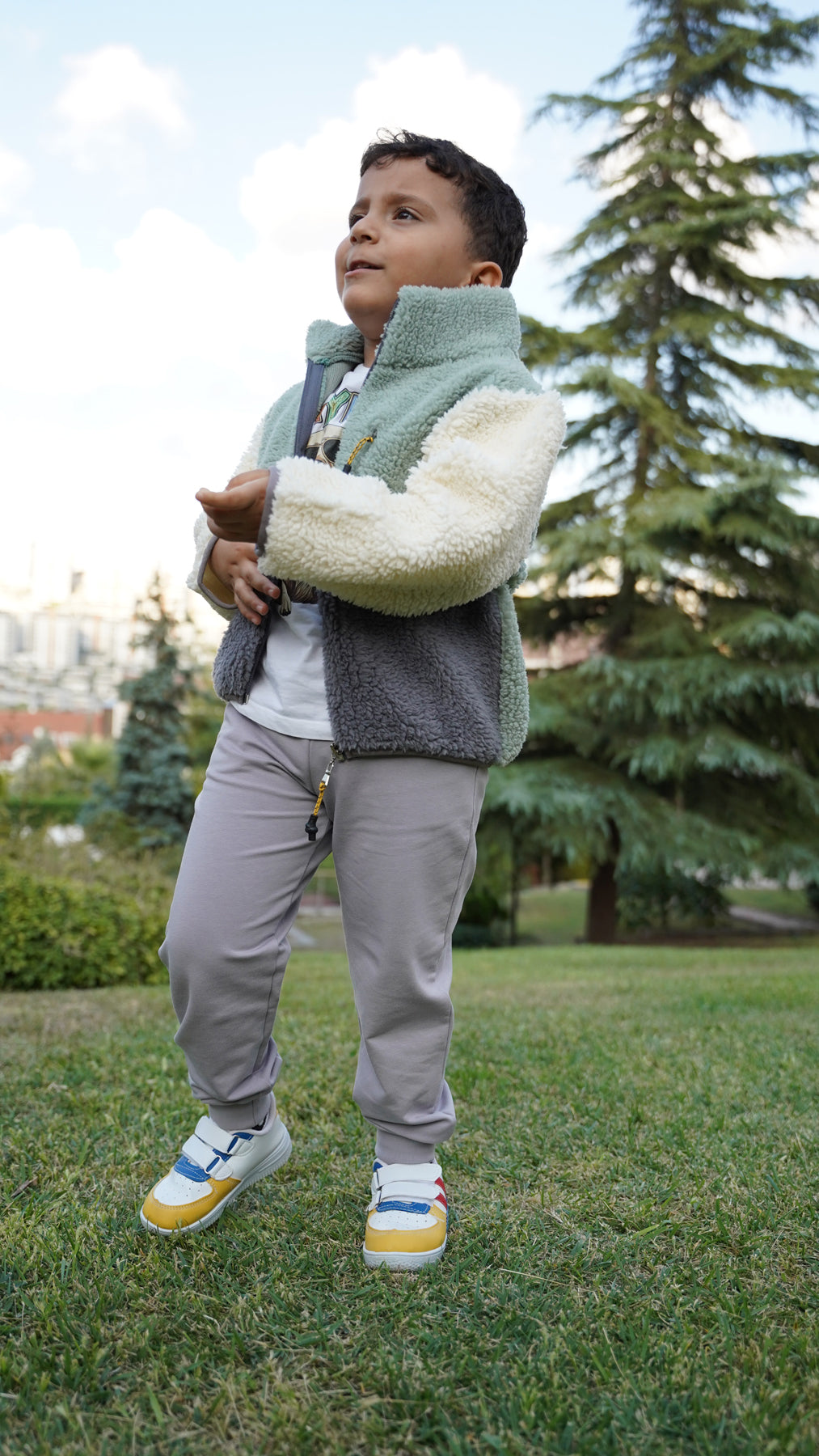 Erkek Çocuk Peluş Ceket - Haki-Antrasit