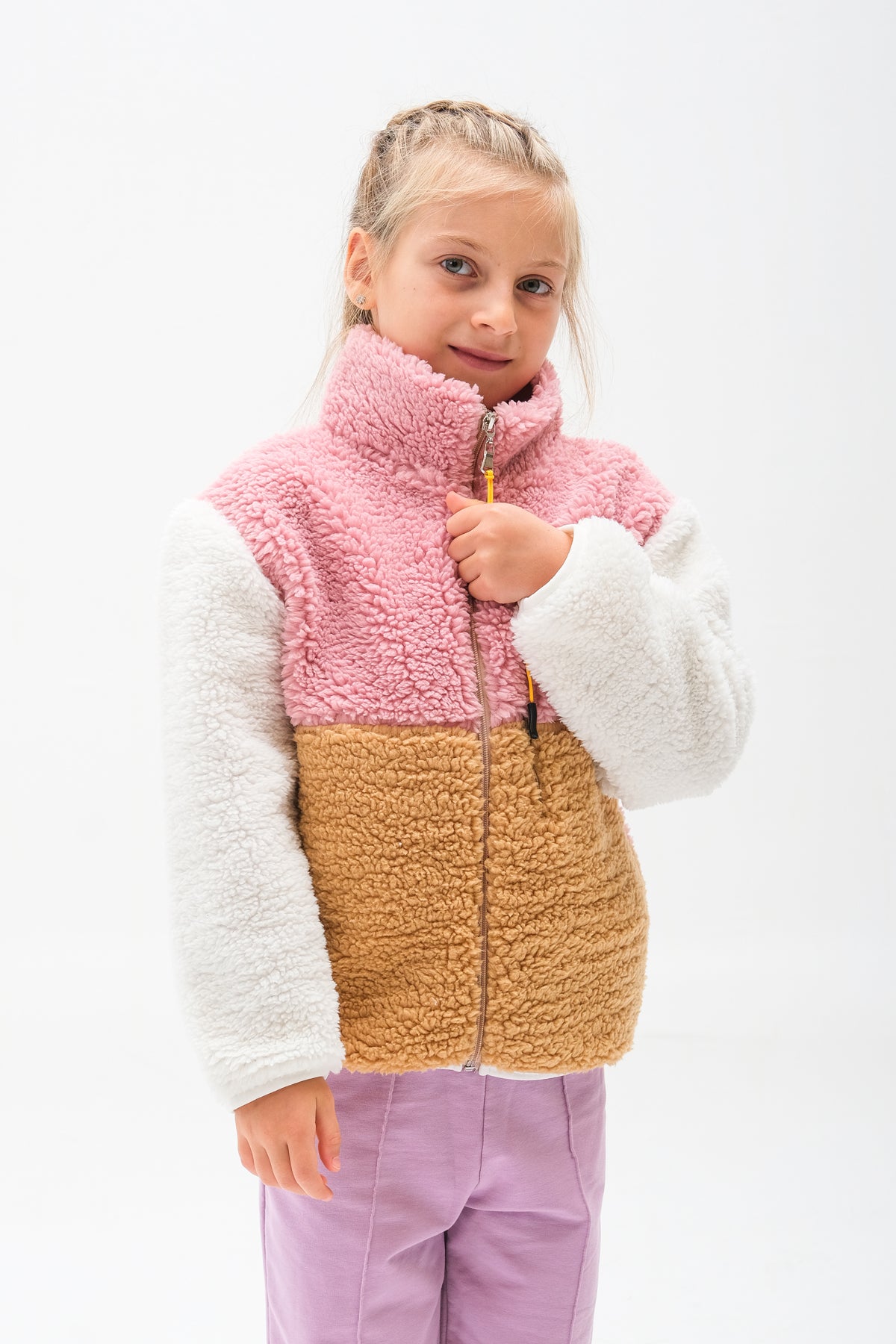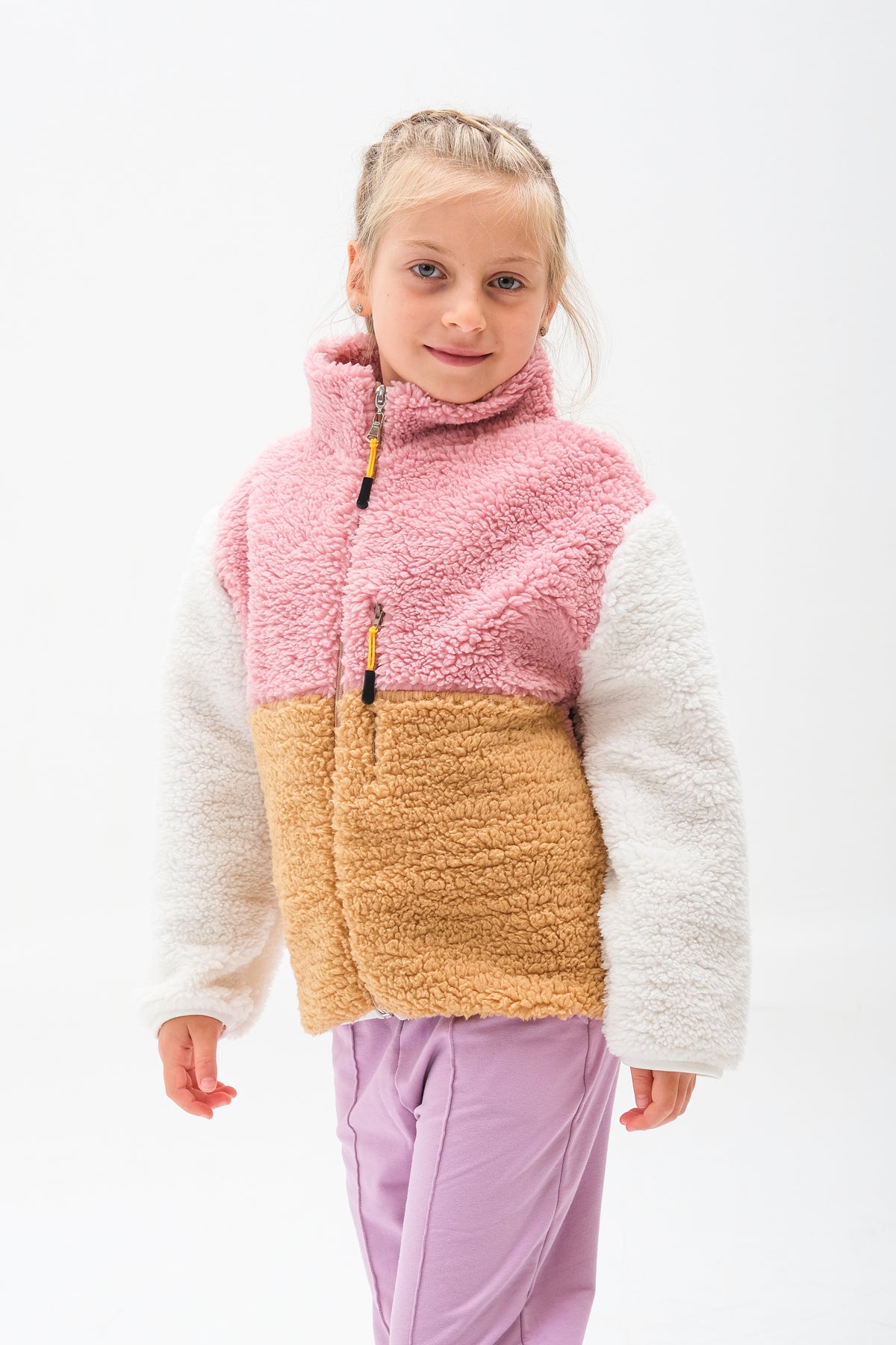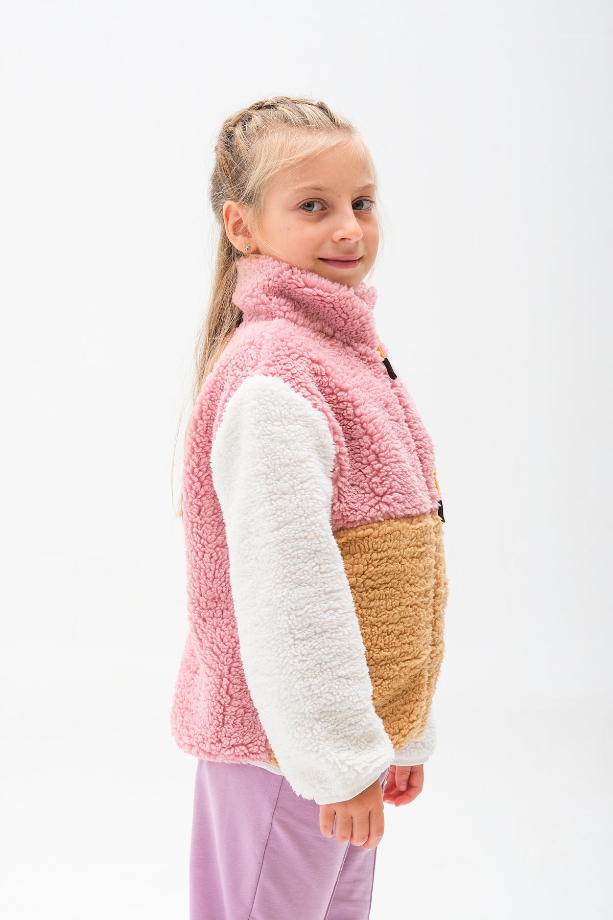 Kız Çocuk Fermuarlı Peluş Hırka - Bej-Pembe-Ekru