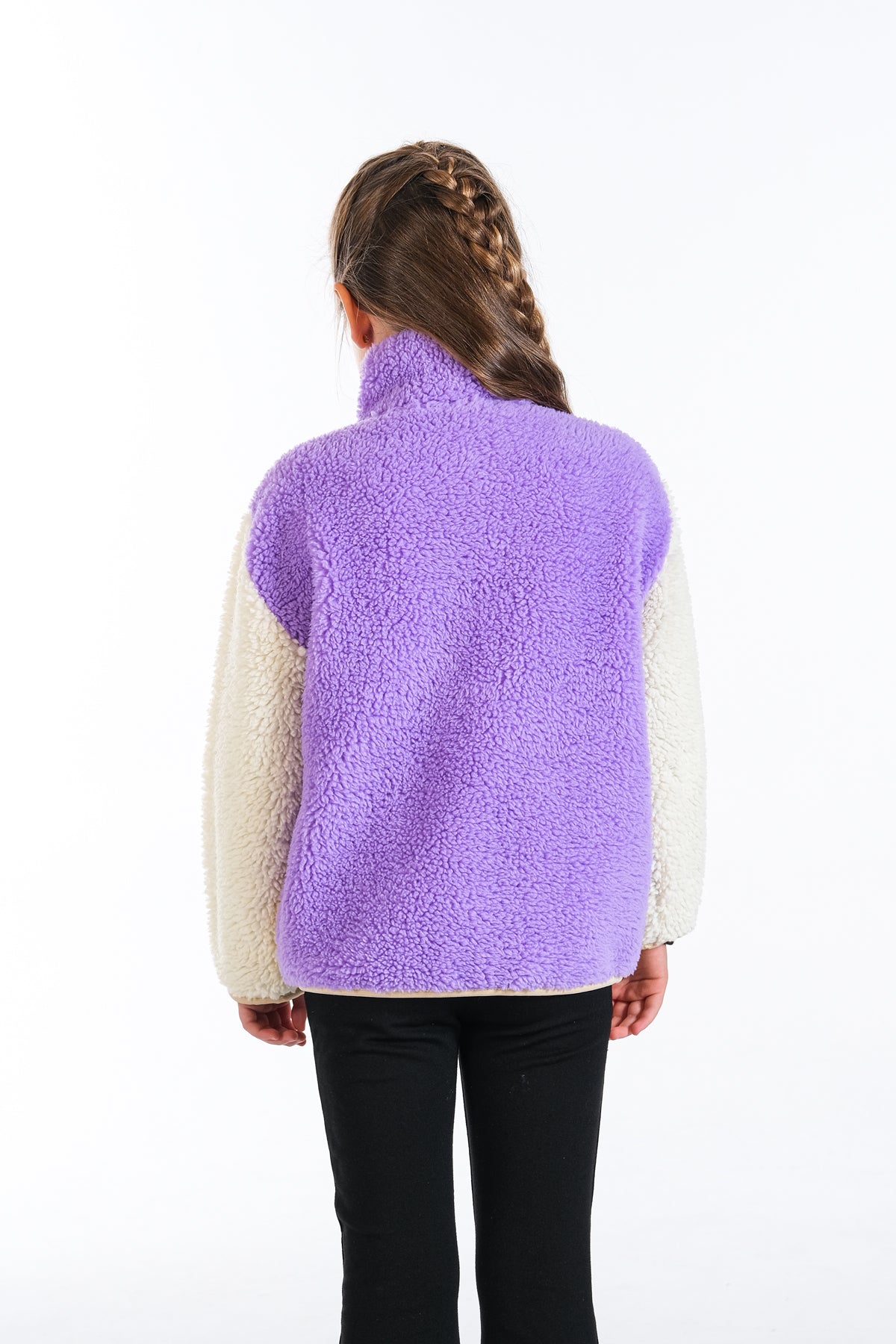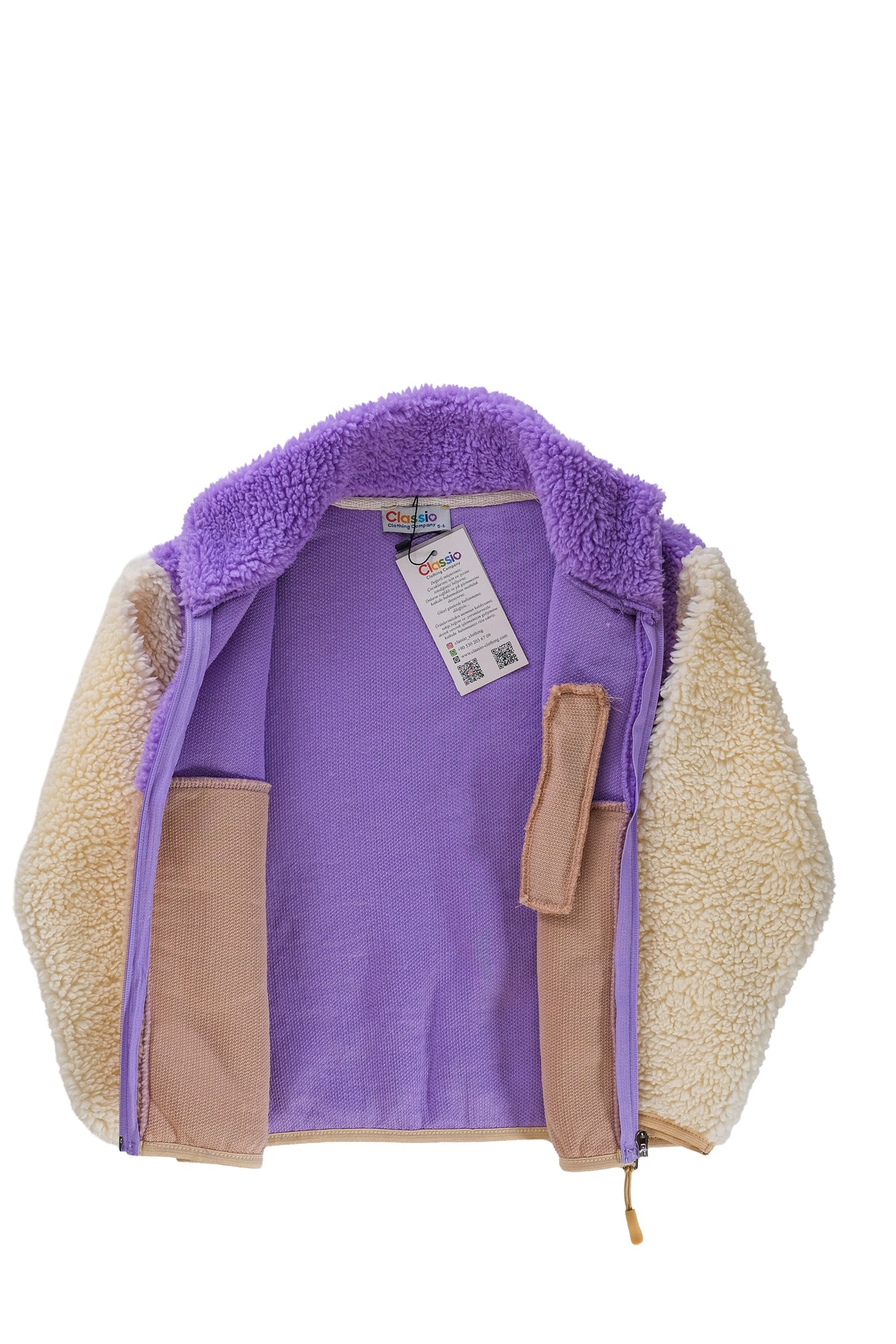 Kız Çocuk Fermuarlı Peluş Hırka - Lila-Bej-Ekru
